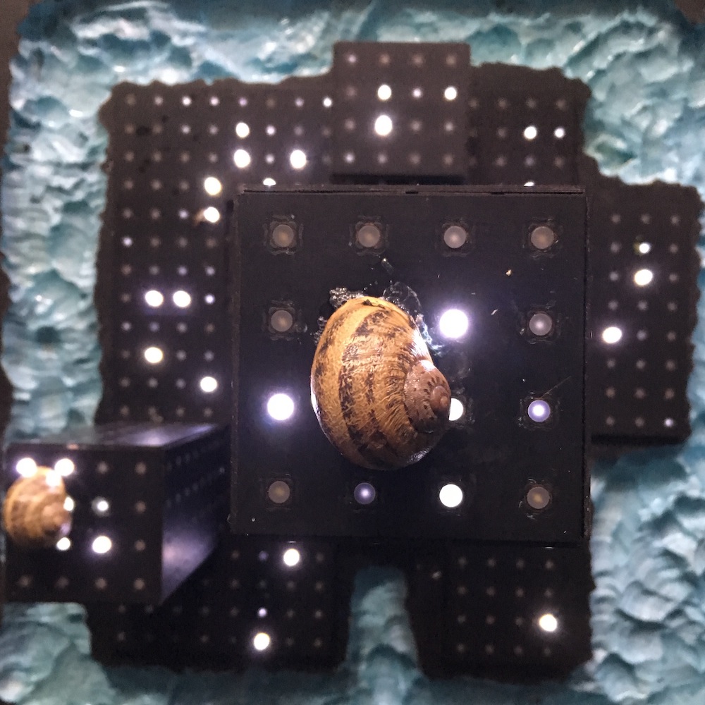 Commencez la promenade avec la vidéo LoveLand de Stéphanie Lagarde, qui évoque l’idéalisation de la conquête des terres promises. Ralentissez pour contempler les escargots lumineux d’Antonin Fourneau dans son installation Trace de vie. Vous venez d’entendre un avion ? C’est l’œuvre Trafic aérien de Cécile Babiole, qui rend palpable, en temps réel, la densité de l’activité aérienne au-dessus de nous. Et puisque la mobilité est inhérente à la vie, voyagez dans le temps grâce au Paysage rupestre de Samuel Rousseau qui donne vie et mouvement à des dessins de l’ère paléolithique.