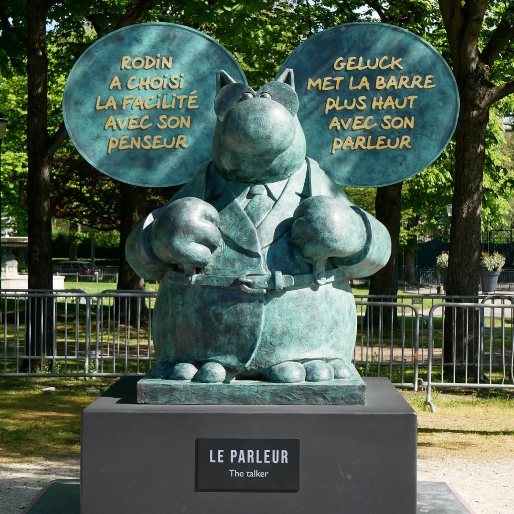 Au même moment, des sculptures et des dessins préparatoires seront visibles dans la galerie Huberty & Breyne spécialisée dans les bandes dessinées à Paris, avenue Matignon. va présenter une exposition de dessins préparatoires ayant servi à la réalisation des sculptures, certains bronzes au format original, des toiles et des dessins de grand format, le temps de l’exposition « Le Chat à Matignon » dans la galerie de l’avenue Matignon, de quoi faire de belles découvertes !