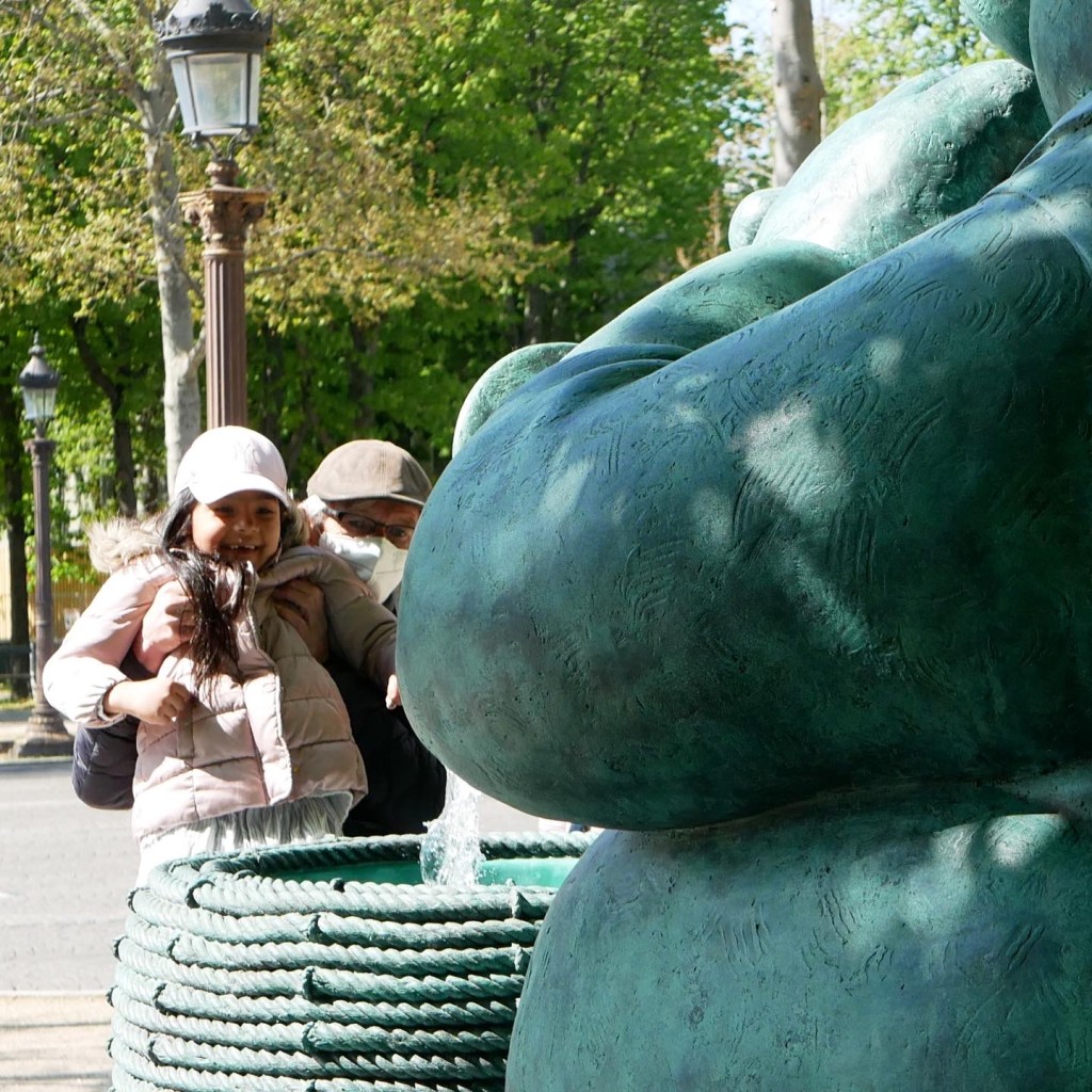 Sur l’avenue parisienne la plus célèbre du monde, les visiteurs peuvent admirer la performance artistique et rire à l’humour de l’artiste belge.