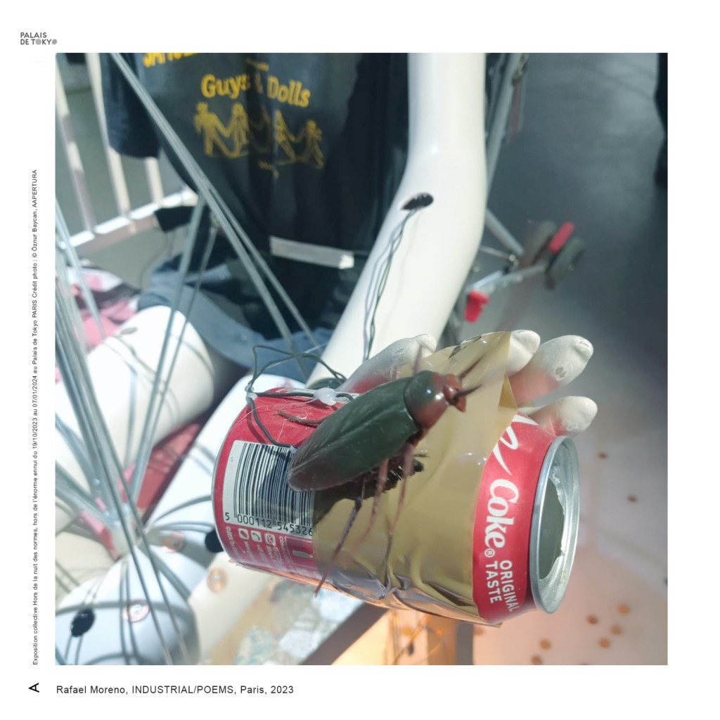 Née en Colombie en 1993, Rafael Moreno vit et travaille à Paris. À travers l’installation, la performance et le texte, Rafael Moreno interroge la notion de « performativité » et de « technologique ». Afin de déconstruire les relations nées de formes de domination et de pouvoir, iel s’appuie sur des narrations fictionnelles bâties à partir d’objets trouvés dont la symbolique capitaliste, néolibérale et occidentale sert à analyser le rapport entre le corps humain, la technologie et les contextes socio-économiques actuels.