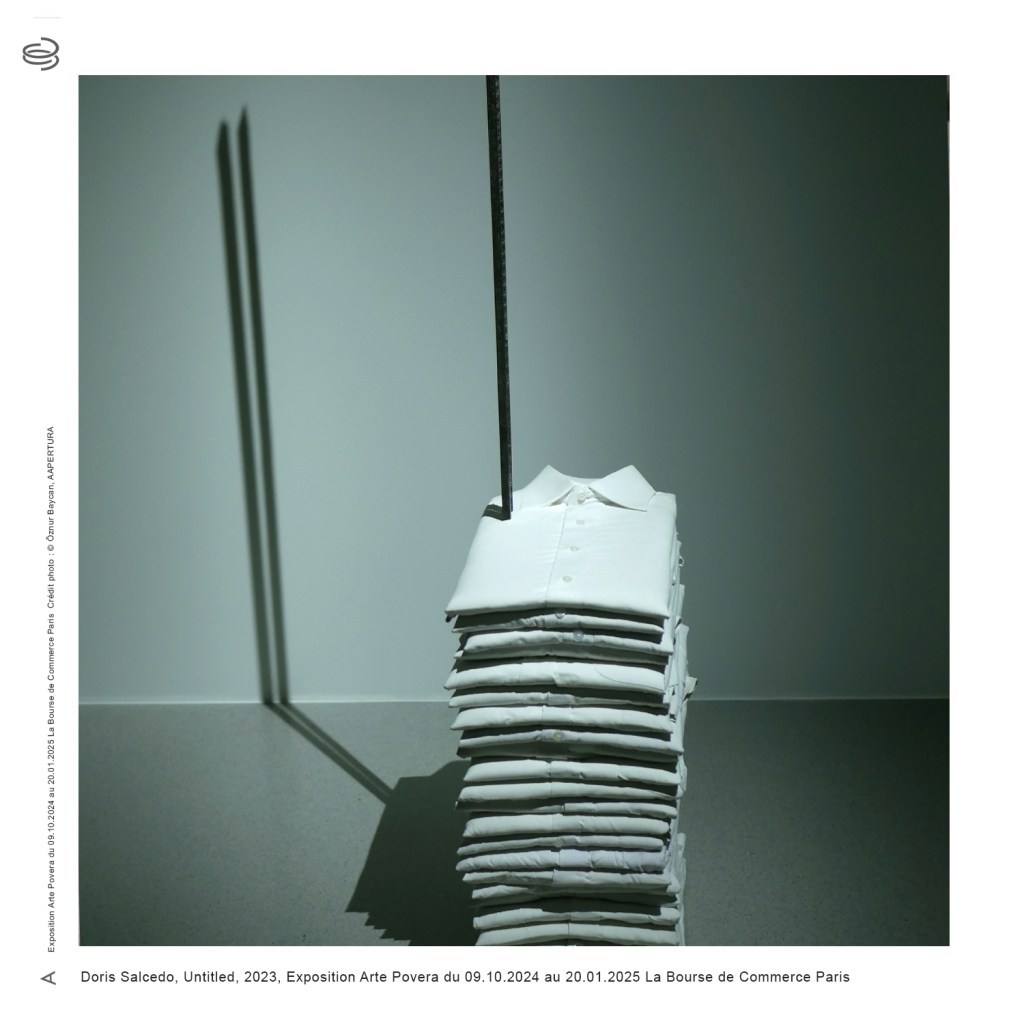 Dans Untitled, des tiges d’acier transpercent des chemises blanches pliées et entassées les unes sur les autres. Cette œuvre est une référence directe à deux massacres qui ont eu lieu en 1988 dans des plantations de bananes du nord de la Colombie. Figées sous une chape de plâtre, ces chemises – représentation vestimentaire traditionnelle des ouvriers des plantations – prennent la forme d’un monument aux victimes anonymes égrenées dans les nouvelles.