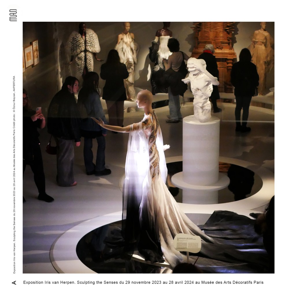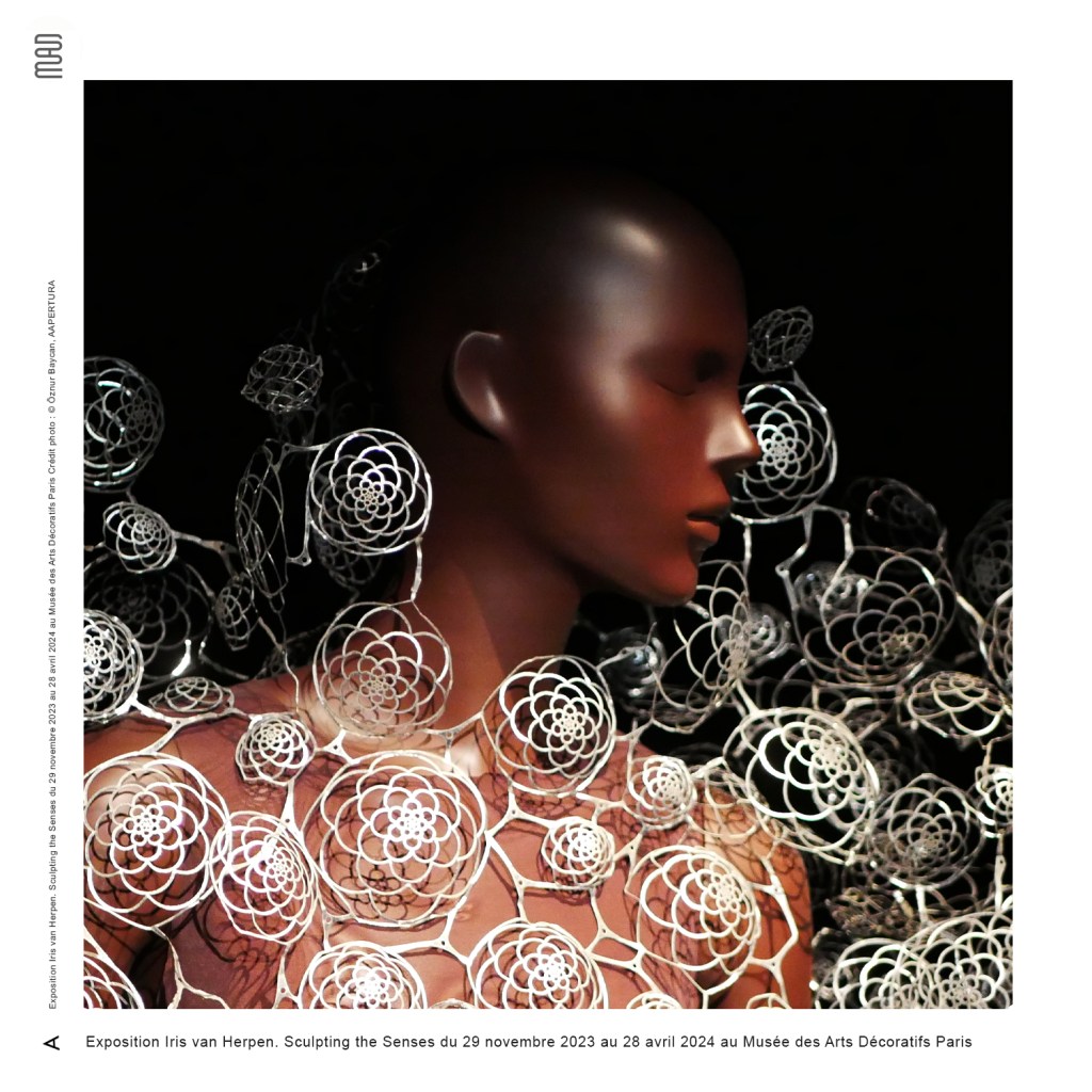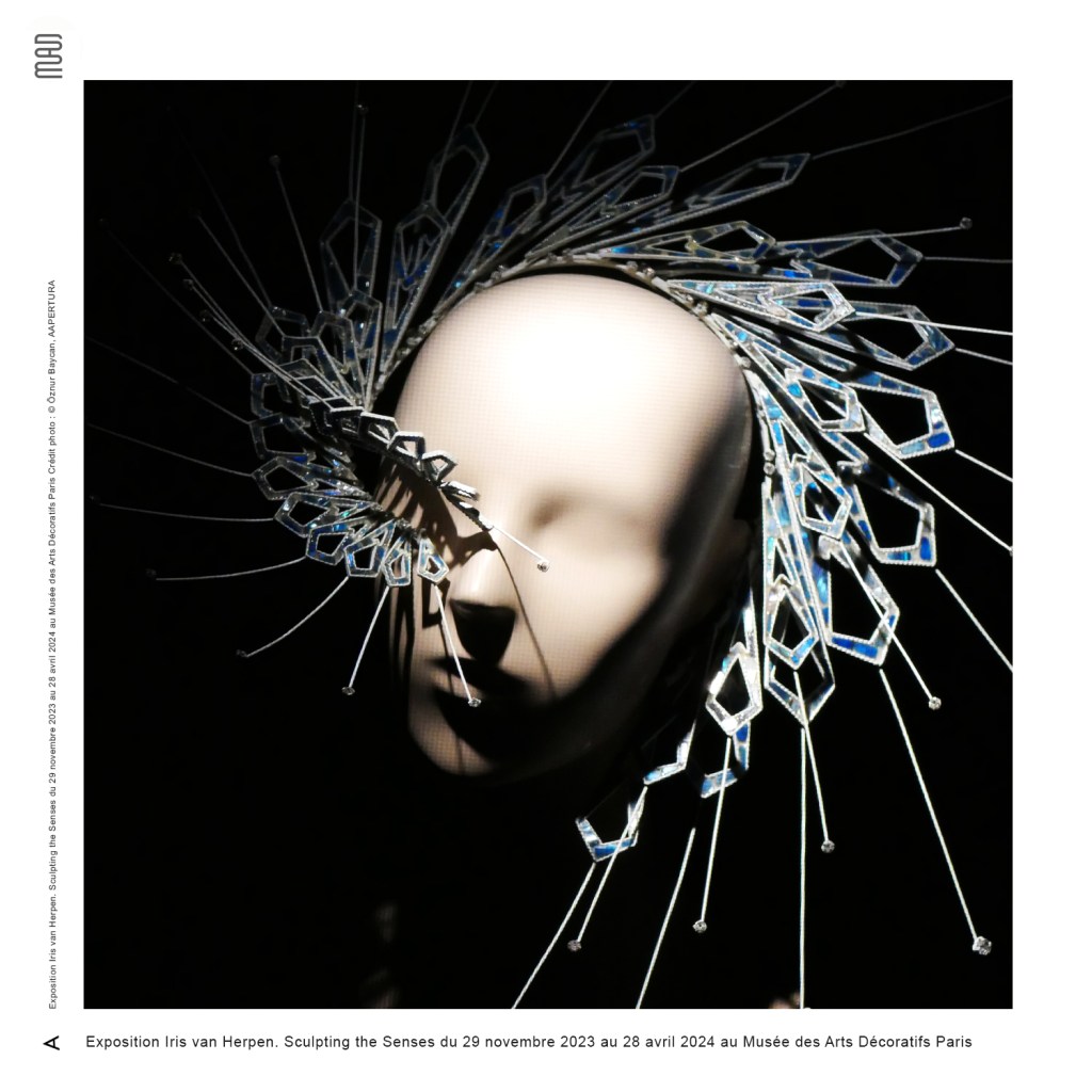 Organisée au musée des Arts Décoratifs, du 29 novembre 2023 au 28 avril 2024, l’exposition « Iris van Herpen. Sculpting the Senses » rend hommage à l’une des créatrices de mode les plus visionnaires de sa génération. Pionnière dans l’usage des nouvelles technologies dans sa discipline, Iris van Herpen transgresse les normes conventionnelles du vêtement, ouverte tout autant aux savoir-faire traditionnels que prospectifs.