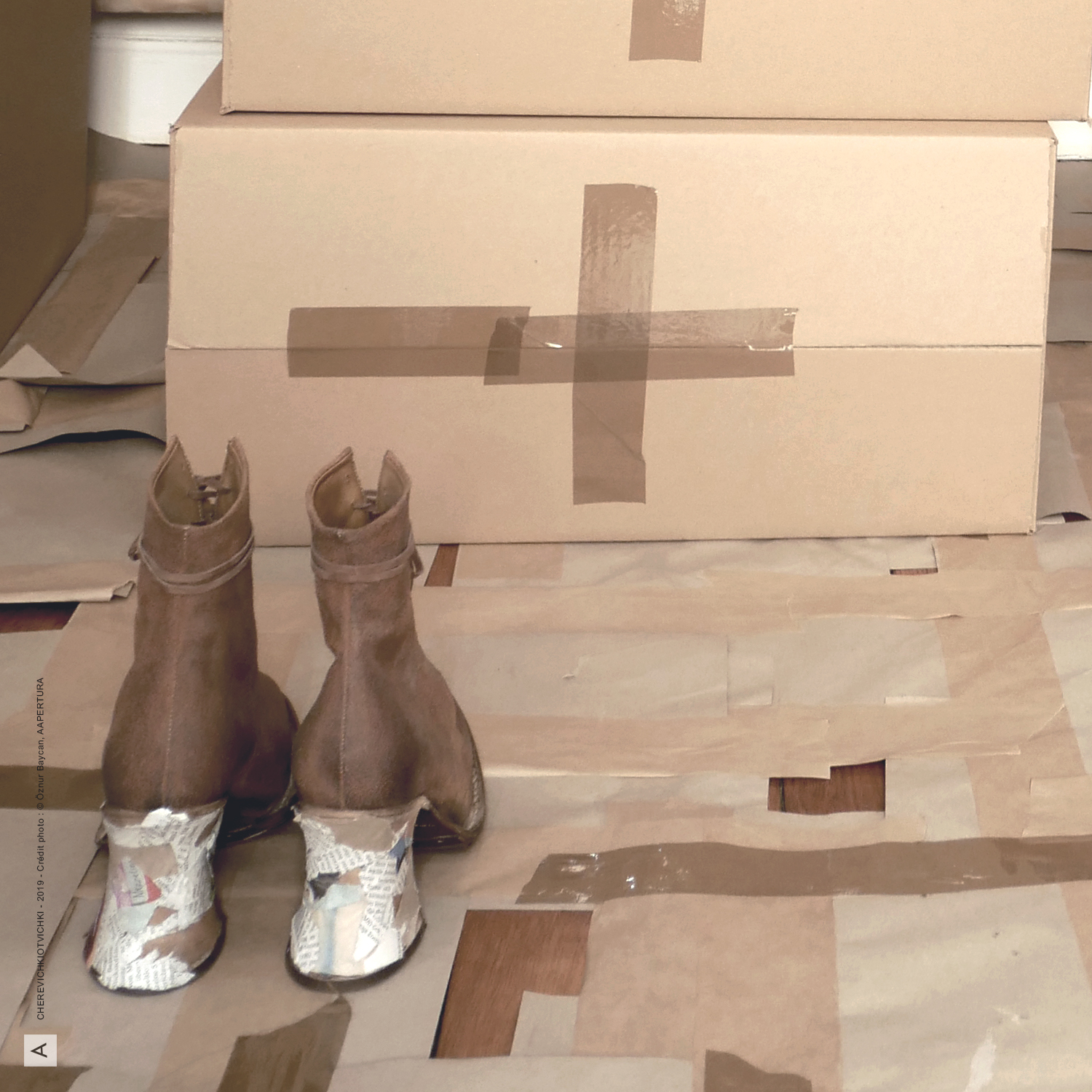 La cordonnier autodidacte effectue de nombreuses recherches artisanat traditionnel entre son atelier à Londres et son usine en Italie. Cela va de pair avec les techniques inventives de Victoria. « Focal one » étant la recherche matérielle et le cuir en voie de disparition, son récit évolue toujours au moyen de couleurs et de textures, en travaillant avec l’opulence de la palette naturelle de nuances de marron, de bronze, de blues blanc et de blancs. Cherevichkiotvichki est une invitation cérémonielle dans le monde des fabricants: jeter un coup d’œil à son enfance, visiter des terrains de jeux et des lieux à la recherche de secrets cachés, mais pas oubliés…